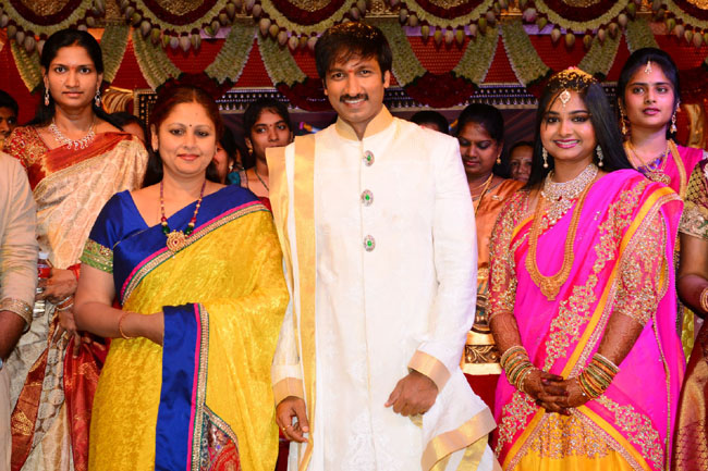Hero gopichand srikanth sister daughter Reshma marriage celebrations photos are here.All film celebrities attended for Gopichand reshma marriage.Srikanth dance performance is one of the highlights of this marriage.